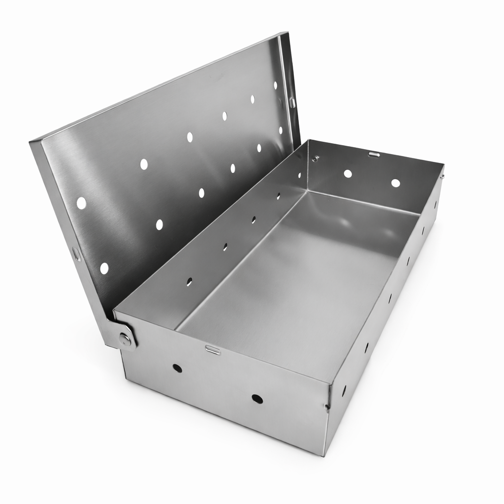 La Caja Ahumadora esta fabricada en acero inoxidable y diseñada para resistir altas temperaturas sin deformarse, incluso al ser colocada directamente sobre las brasas.