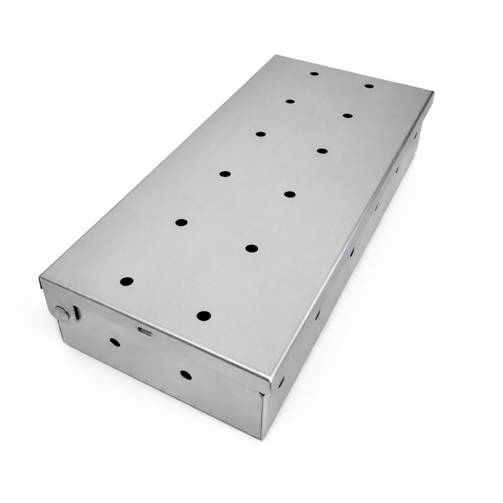 Disfruta el auténtico sabor del ahumado con este pack ideal para cualquier parrilla o ahumador. La caja ahumadora de acero inoxidable permite que los chips de madera se consuman de forma lenta y controlada, generando un humo más puro y prolongado, logrando aromas intensos y penetrantes. Incluye una bolsa de Chips #3, perfectos para cocciones largas como brisket, pulled pork o costillares, entregando humo continuo y un sabor clásico BBQ.